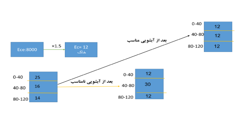 در آبشویی نامناسب نمک از عمق 40-0 خاک شسته شده و در عمق 80-40 سانتیمتری خاک که محل فعالیت ریشه بوده تجمع کرده است.