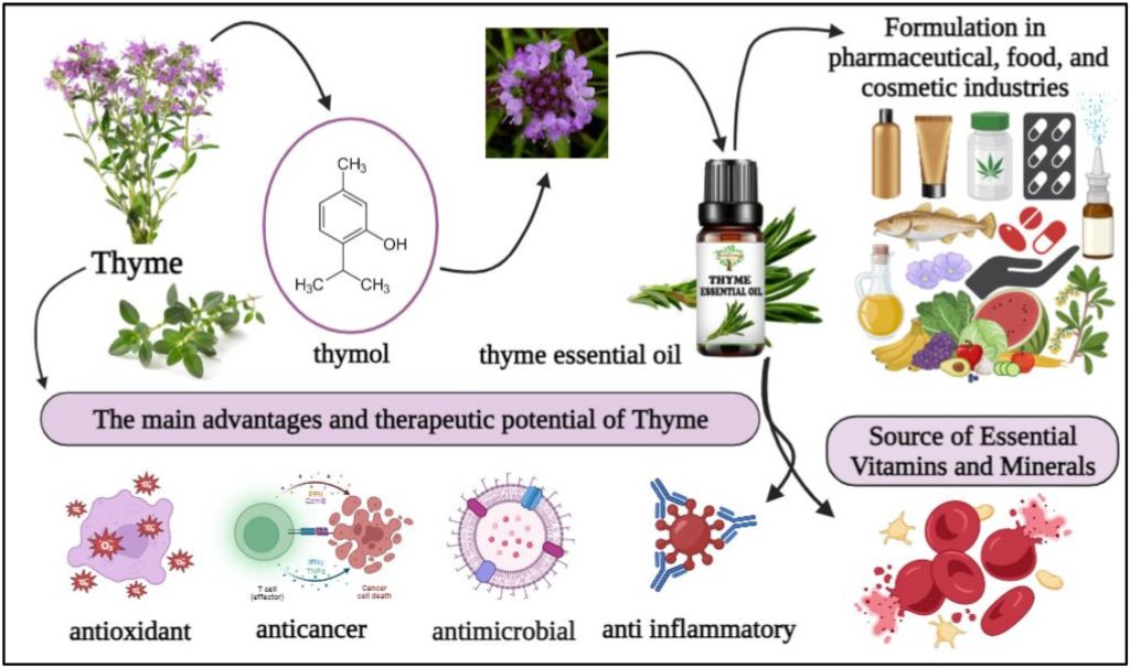 - محصولات آرایشی و بهداشتی: شامپو، کرم و پماد که از عصاره آویشن تهیه میشوند.