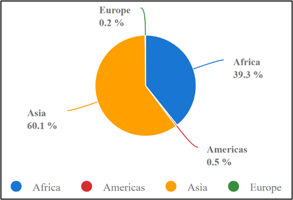 میزان تولید خرما در قاره های مختلف(فائو، 2023)