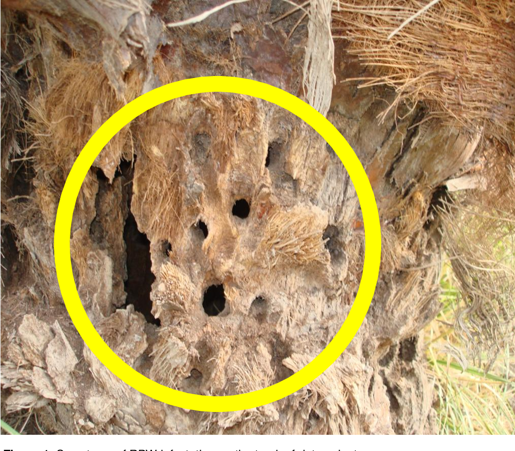 علائم آلودگی سرخرطومی حنایی درختان خرما