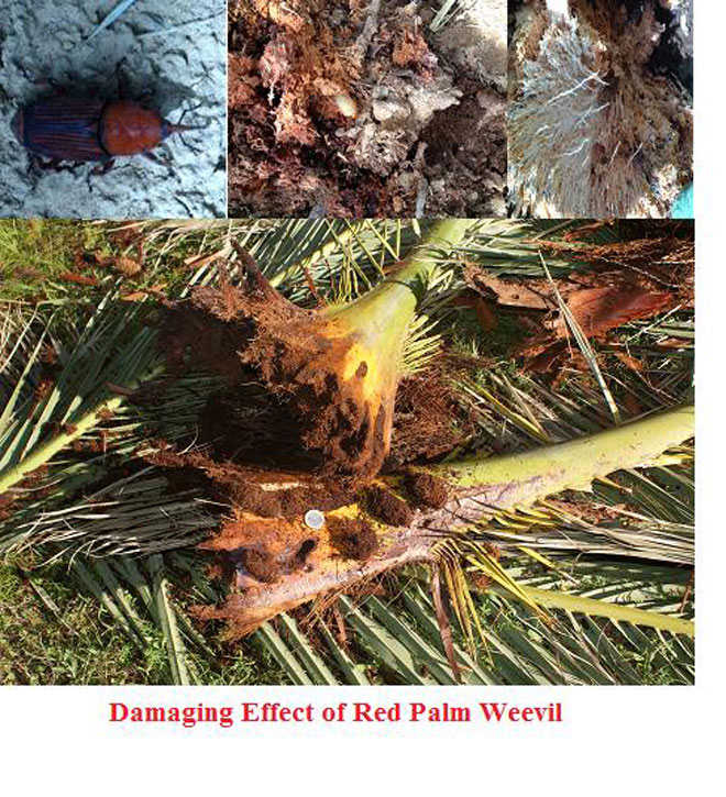 خرما از محصولات مهم و ارزشمند مناطق گرم و خشک کشور است، اما یکی از خطرناک‌ترین آفات تنه‌ای که می‌تواند خسارت سنگینی به نخلستان‌ها وارد کند، سرخرطومی حنایی خرما با نام علمی Rhynchophorus ferrugineus  است. این حشره در دهه‌ی ۱۳۶۰ برای نخستین‌بار از شهرستان سراوان در استان سیستان و بلوچستان گزارش شد و به‌تدریج در استان‌های هرمزگان، کرمان، فارس و بوشهر گسترش یافت.
