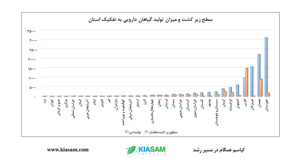 سطح زیر کشت و تولید گیاهان دارویی