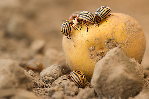 یکی از آفات معروف و خطرناک سیب‌زمینی، سوسک کلرادو (Leptinotarsa decemlineata) است. لاروها و حشرات کامل آن با تغذیه از برگ‌ها می‌توانند بوته‌ها را کاملاً از بین ببرند. این آفت به‌سرعت نسبت به سموم مقاوم می‌شود، بنابراین لازم است از راهکارهای تلفیقی مانند تناوب سموم، جمع‌آوری دستی و کنترل بیولوژیک استفاده شود.